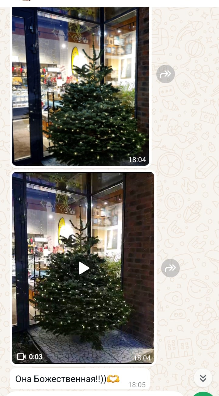 Такие ёлки на 50% более пушистые, имеют ровный ствол и насыщенный зеленый цвет. Не сравняться с уличными базарами.